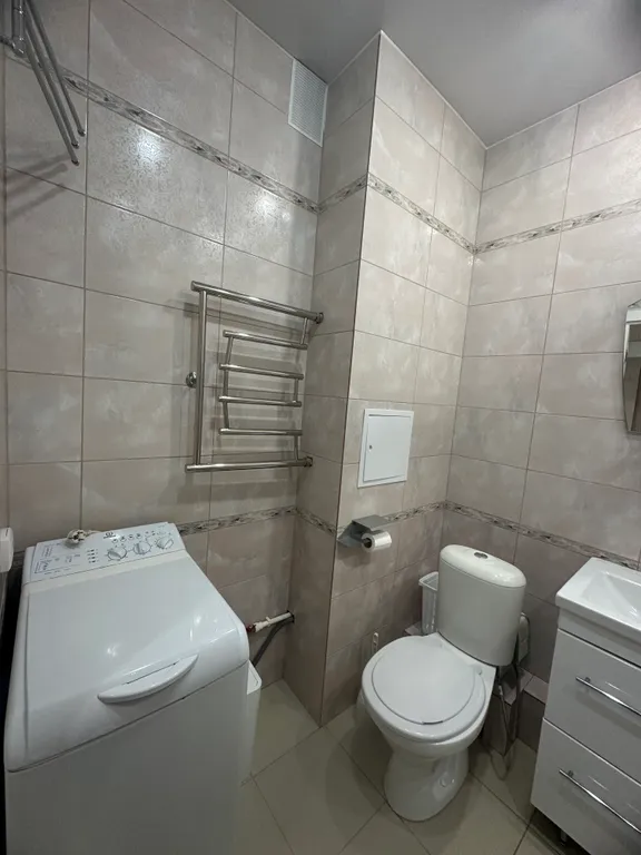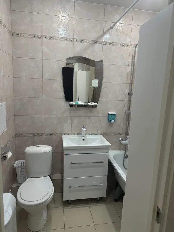 В квартире есть всё необходимое: плита, электрический чайник, чай, кофе, посуда, столовые приборы, гигиенические принадлежности, фен, утюг, стиральная машина, гладильная доска, сушилка для белья, свч-печь, полотенца.