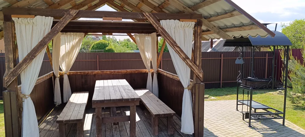К вашим услугам, баня (оплачивается отдельно), беседка с мангальной зоной, закрытая парковка на 3 автомобиля. В доме 2 отдельные комнаты с двуспальными кроватями и 1 смежная комната с двумя двуспальными диванами, имеется вся необходимая бытовая техника. Утюг с гладильной доской, сушилка, стиральная машина.