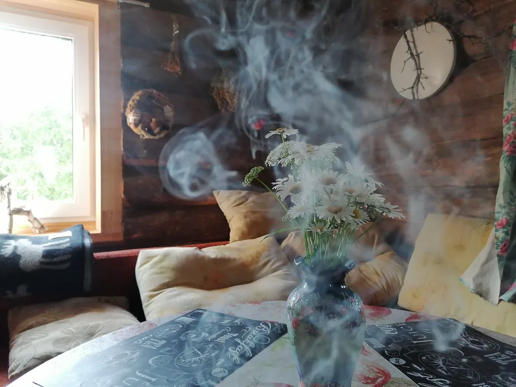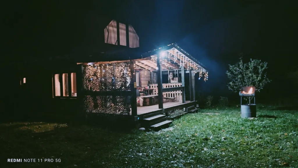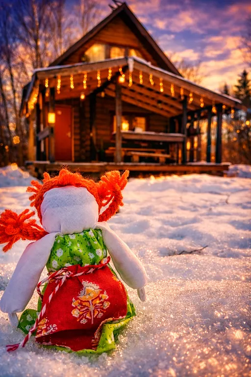 Лунный свет в бревенчатых стенах, фольклорные детали и ощущение, будто дом хранит старинные сказки.