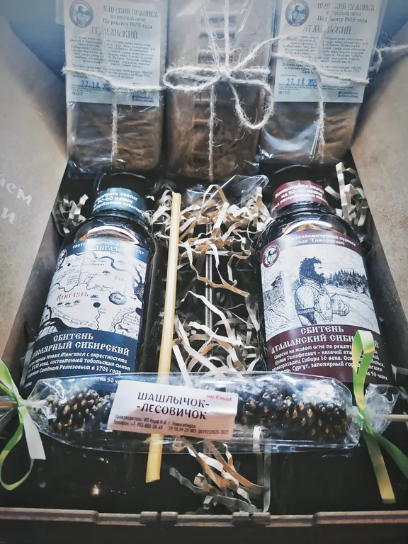 В избе реализована дистанционная продажа сибирских пряных сбитней, медовых пряников из печи, вкуснейших хвойных цукатов, травяных сборов и чаёв хорошей выдержки, ароматных древесных благовоний для создания атмосферы уюта и тепла в доме, подарочных наборов для друзей, близких, коллег. Хозяин лесной избушки ждёт дорогих гостей.