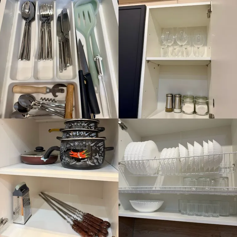 Дом укомплектован всем необходимым для комфортного отдыха: 2 телевизора, холодильник, плита, микроволновая печь, чайник, фен, стиральная машина, утюг с гладильной доской, необходимая посуда для приготовления еды (кастрюли, сковородка, ножи, разделочные доски, шампуры), комплект посуды и столовых приборов, постельное бельё, полотенца, шампунь, гель для душа, жидкое мыло.