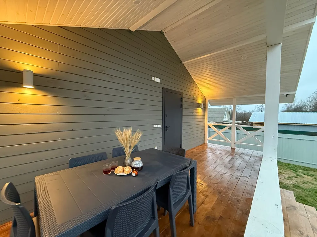 Новый уютный дом с большой террасой, закрытая территория, мангальная и костровая зона.