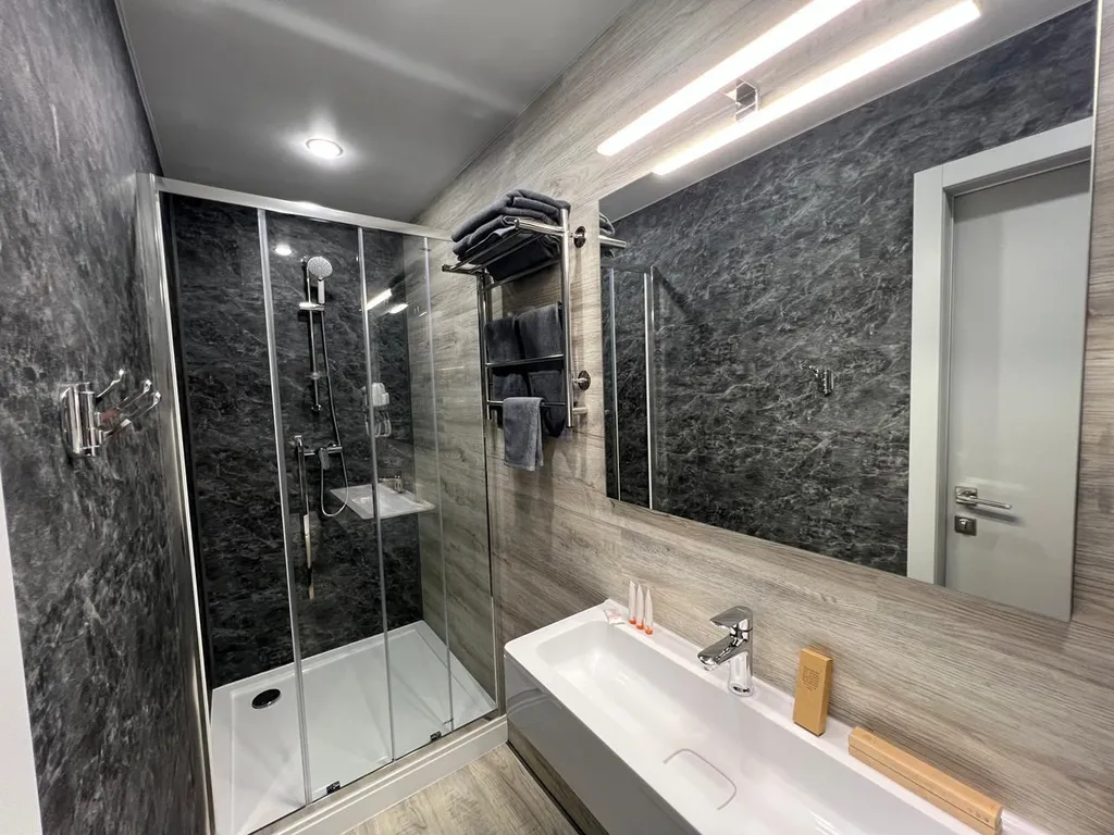В номере кондиционер, телевизор, кресло-кровать. Для каждого гостя по 3 полотенца, мыльные, зубные и бритвенные наборы, уютные тапочки. Прекрасное место для Вашего отдыха.